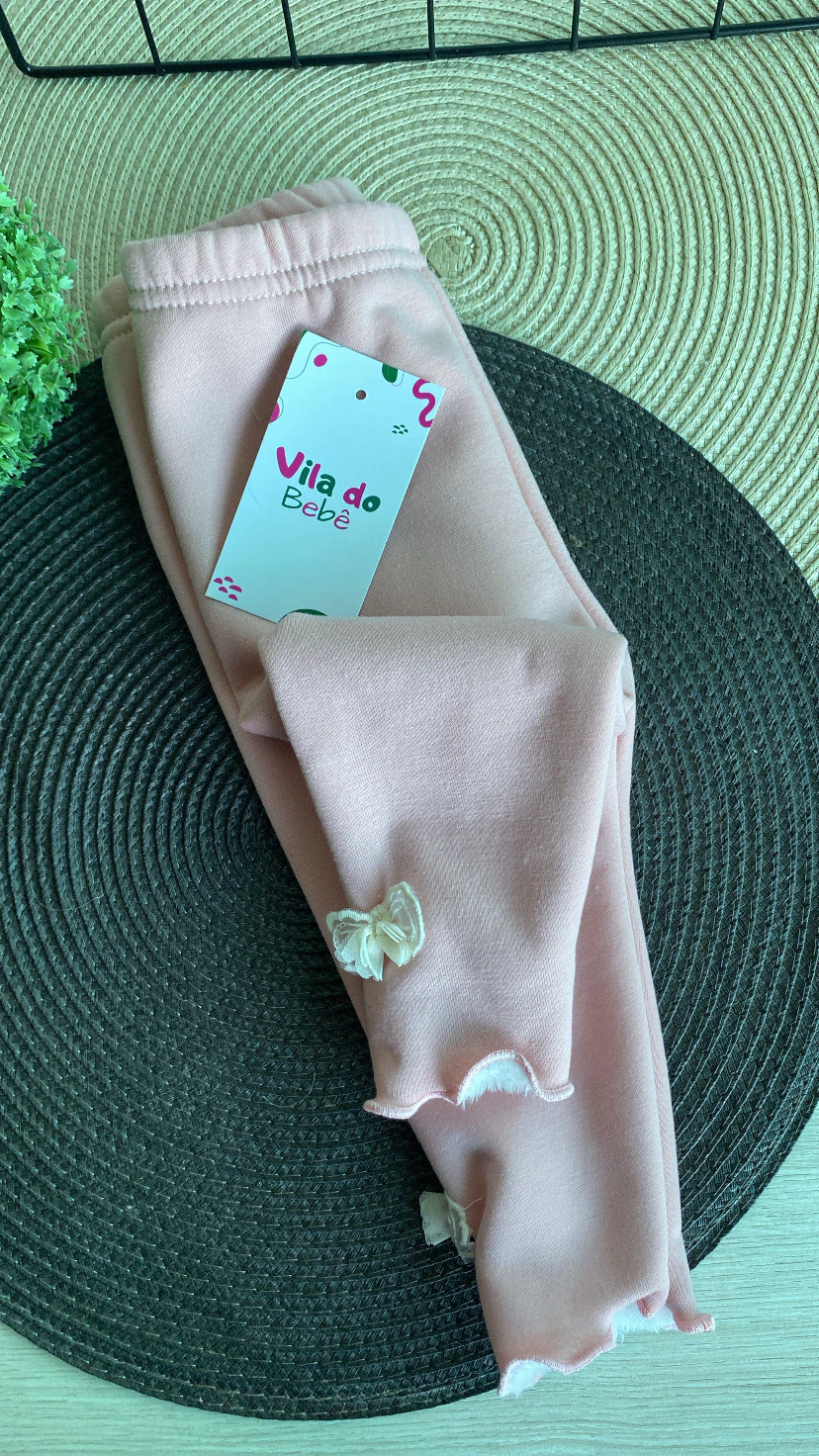 Aqueça os dias da sua pequena com a nossa Calça Moletom Fofinha! Confeccionada com um interior forrado em tecido peluciado, ela garante um conforto incomparável, ideal para o dia a dia.