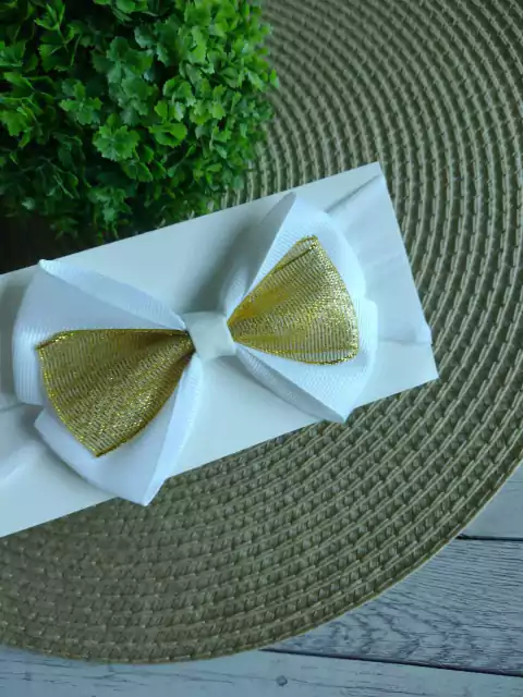 Laço Para Cabelo Bebê Menina Branco com DouradoLaço slim na meia seda, não aperta a cabeça do bebê, super confortável no tecido 100% algodão.Ótima opção para montar kit e presentear.