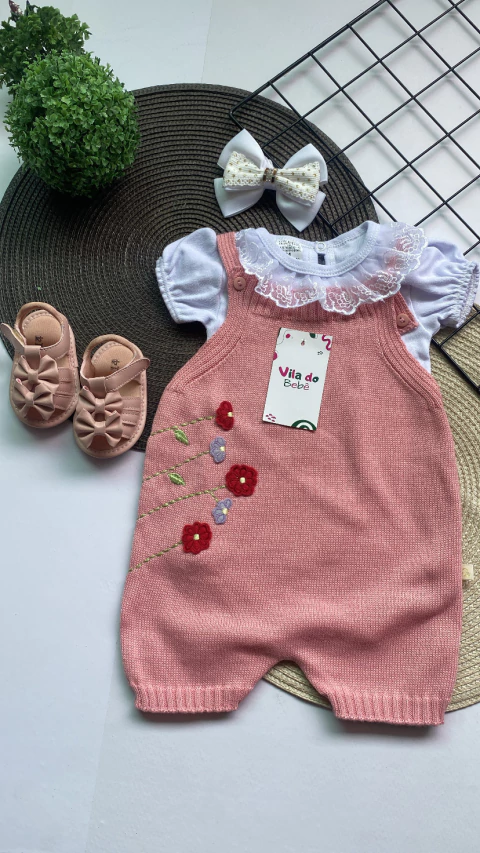 Jardineira + Body de Bebê Menina - Rosa ❤️