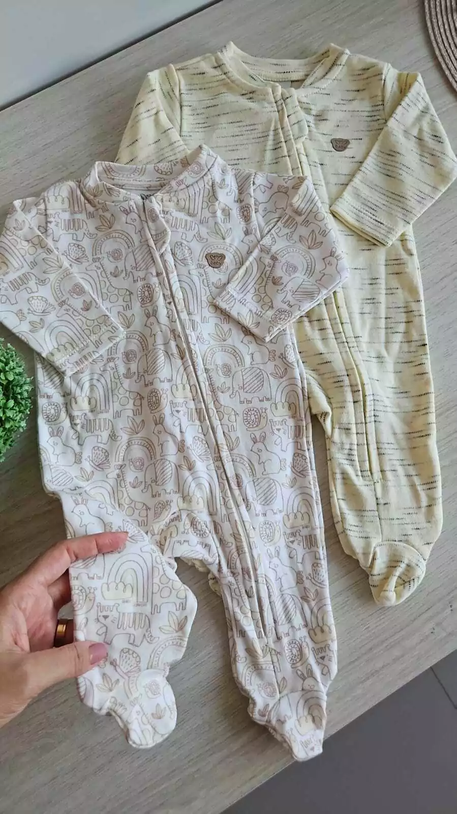 Disponível nos tamanhos: - RN (0-1 mês): pezinho fechado para mais aconchego 👶 - P (1-3 meses): também com pezinho fechado 🌟 - M (3-6 meses): pezinho aberto 🎉