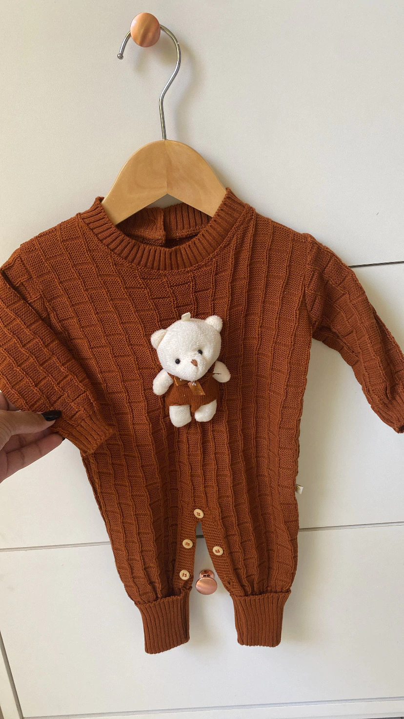 🌸 Macacão em Tricô Premium de Bebê -Caramelo 🌸
