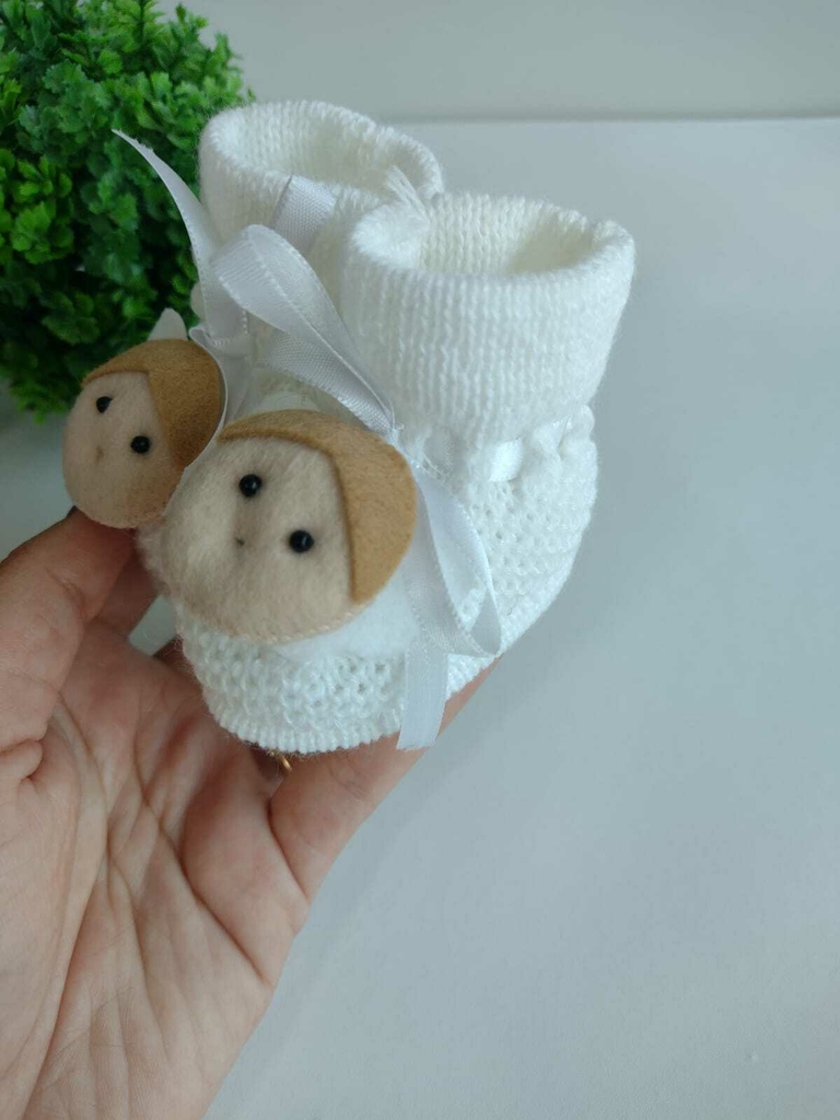 Sapatinho de Bebê Unissex em Tricô Branco Anjo - Recém Nascido